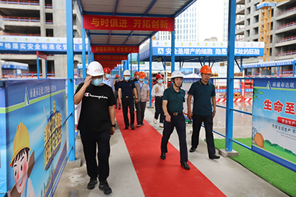 6月11-12日,由集團第八工程公司承建的鉑悅濱江項目,舉行長沙市、湘江新區兩級建設工程質量安全管理標準化觀摩活動。省、市、區三級安全質量監督站領導現場觀摩指導,共計200多家單位、400多人參加了本次活動,因疫情防控,觀摩人員分批進入工地。