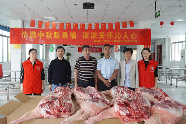 慰問現場,達欣為敬老院123名老人送去月餅、豬肉、牛奶等過節禮品,并同他們聊天話家常,了解他們的生活起居、醫療保健狀況,希望他們在敬老院安心生活,在這個大家庭里安享晚年,老有所養,老有所樂。