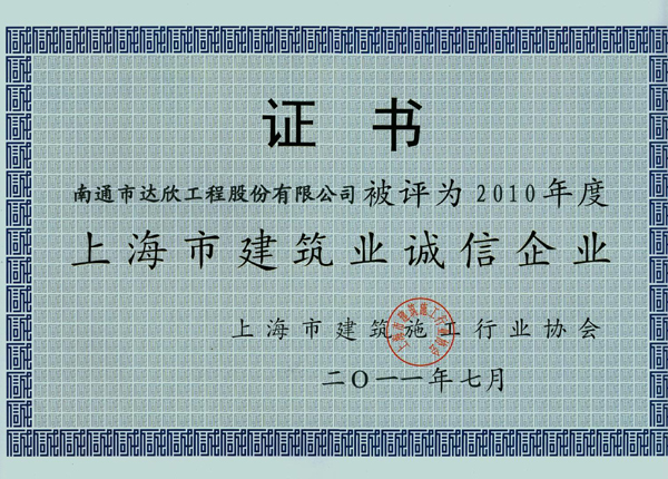 日前,在上海市建筑施工行業協會舉辦的企業誠信建設行業評審活動中,第一工程公司榮獲“2010年度上海市建筑業誠信企業”稱號。 這是第一工程公司連續5年獲此殊榮。