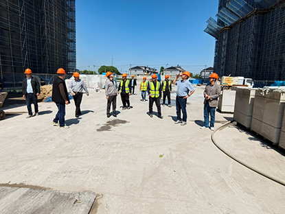 溫鶴華就《建筑與市政施工現場安全衛士與職業健康通用規范》(GB55034-2022)、《施工腳手架通用規范》(GB55023-2022)執行情況與項目進行了交流,要求項目認真研究學習規范條文內容,嚴格執行規范條文要求。