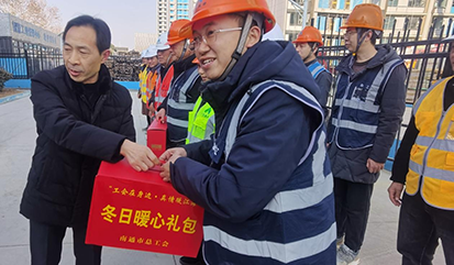 1月13日,南通市總工會黨組成員、經審會主任周正秋,南通市總工會權益保障部部長趙周恒一行,來到達欣集團南通R23005地塊項目建設現場,開展“工會在身邊 真情暖江海”2025年春節送溫暖活動,為奮戰在一線的工作人員送上冬日暖心禮包和新春的祝福與慰問。